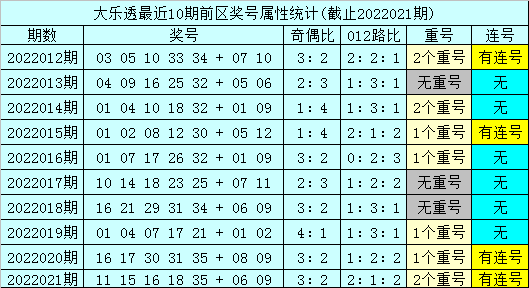 3。上期三区比为1:3:1,本期看好第一区(01-12)号码大热,开出3个奖号,三区比关注3:1:1。