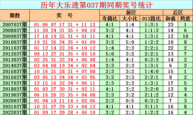 在历史同期开奖中,后区号码和值奇偶为6:10,其中奇号和值出现相对较少,本期适当关注奇号和值回补,参考和值7。