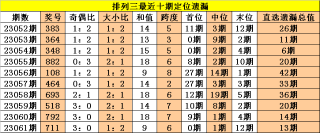 开奖回顾:排列三第2023061期奖号:711,定位直选遗漏值0期、1期、12期,遗漏总值为13期。