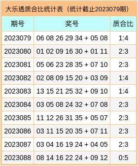 大乐透第2023089期号码综合参考: