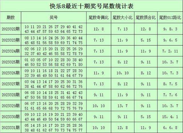 陆白秋快乐8第2023332期奖号尾数分析