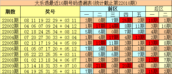 上期开奖:大乐透第2022010期开奖号码为:04 19 25 31 35 +02、11,各位号码遗漏值分别为:7 4 2 0 2 + 15 2。