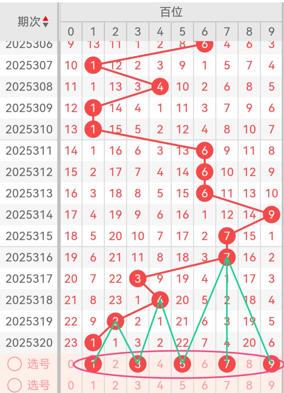 上期十位开出1,重点号码1:作为上期百位开奖号,近30期在百位出现6次,且质数区热态延续下,重复开出的概率较高,1与6存在隐性关联,符合数字联动规律。重点号码3:近30期在百位出现3次,属于高频冷号,317期曾开出该号码,且在低跨度之后,3作为中等数值,能有效衔接跨度回升的走势。重点号码5:5作为核心质数,同时契合期号分解定位法,具备热号衔接属性。备用号码7:近30期在百位出现5次,是高频热号,虽近期略有回落,但质数区强势背景下,具备解冻潜力;备用号码9:作为大区质数,能覆盖跨度回升后的数值需求,可作为极端情况的补充。
