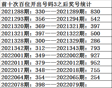 上期回顾:福利彩票3D第2022078期开奖结果398。奖号:奇奇偶、小大大,和值20,跨度6。