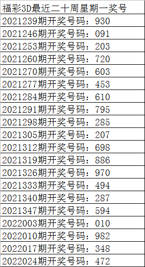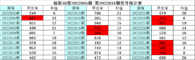 上期回顾:福彩3D第2022034期奖号为:689,其中奖号组选类型为:组六,奇偶比为1:2,大小比为3:0,012路比为2:0:1,和值为23,跨度为3。