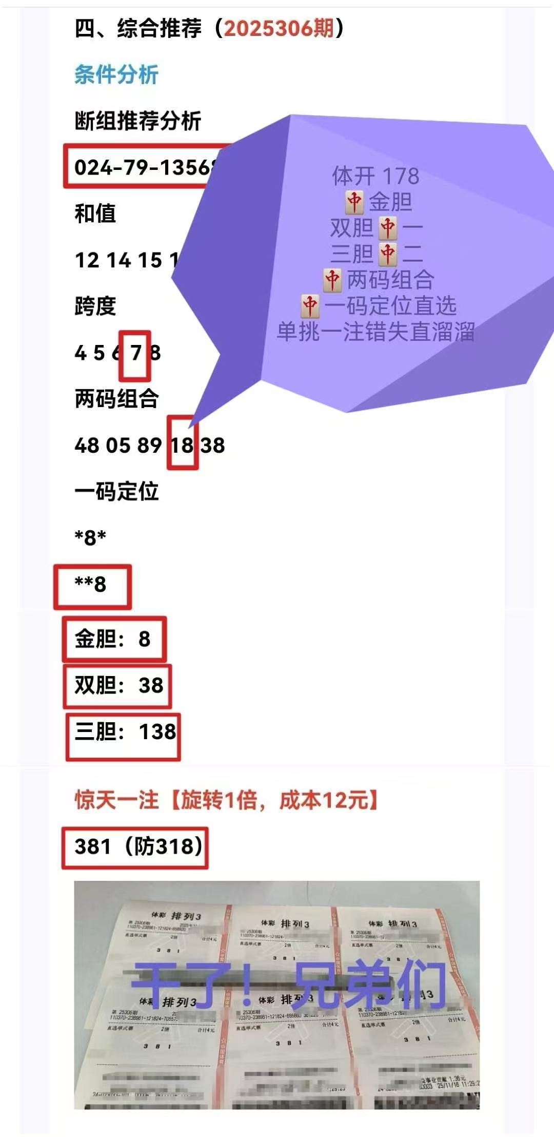 2025306期 命中一码定位直选,命中金胆,三胆中二,命中两码组合