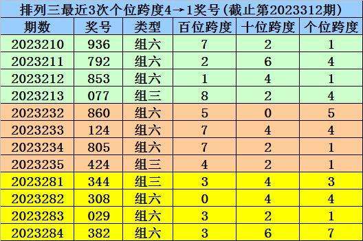 第2023232-第2023234期奖号:860、124、805,其下期奖号为:424,末位号码跨度为4;