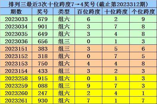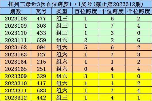 第2023309-第2023311期奖号:329、417、583,其下期奖号为:442,首位号码跨度为1;