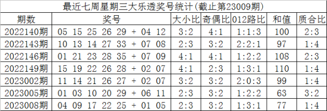 第2023010期大乐透星期三奖号分析: