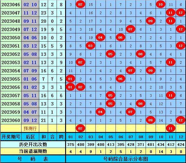后区分析:上期后区开出全0路奖号09+12,最近10期后区奖号012路比为6:5:9,本期注意全2路组合,关注两码02、11。