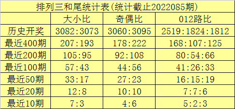 和尾质合推荐:统计前50期奖号,和尾质合比为27:23,质数和尾相对较多;统计前20期奖号,和尾质合比为10:10,和尾质合比例相当,本期注意开出质数和尾。