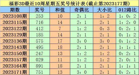 大鹏福彩3D第2023178期星期五奖号分析: