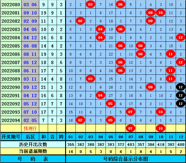前区二号球分析:上期开出奖号04,该位最近10期出现范围在04-20之间,中点为12,其中小于中点的奖号出现7次,大于中点的奖号出现3次,中点12没有出现,本期该位继续关注中位号码以下的号码,考虑号码10。