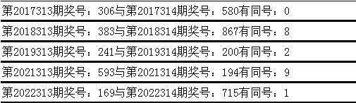 与前期历史同期奖号对比分析,在最近五年开奖中,第313期同期奖号与第314期同期奖号都出现了相同号码: