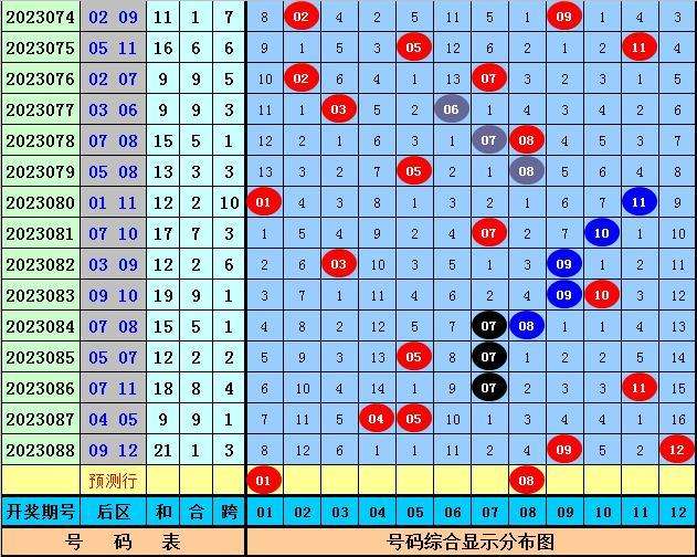 大乐透第2023088期开出奖号:2023088期,其中前区奖号五区比为08 14 16 22 24 +09 12,后区奖号和值为0:2:1:2:0,跨度为2023088期。