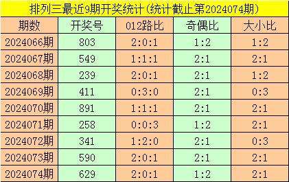 二、体彩排列三前9期奖号开出:803-549-239-411-891-258-341-590-629,其中奖号大小比为12:15,012路比为11:7:9,奇偶比为15:12;