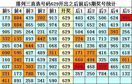 四、排列三直选号码629历史上开出10次,其前后五期奖号分别为: