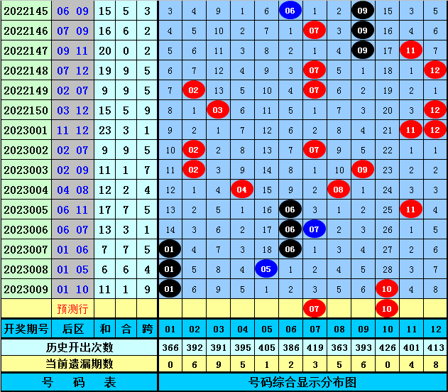 樊可大乐透第2023010期历史同期奖号定位分析: