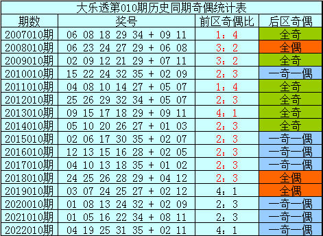 后区分析:在第010期历史同期开奖中,后区奖号奇偶比为19:13,最近5年同期后区奇偶走势为:全偶、全偶、一奇一偶、一奇一偶、一奇一偶,今年同期看好再出一奇一偶组合,关注号码07、10。