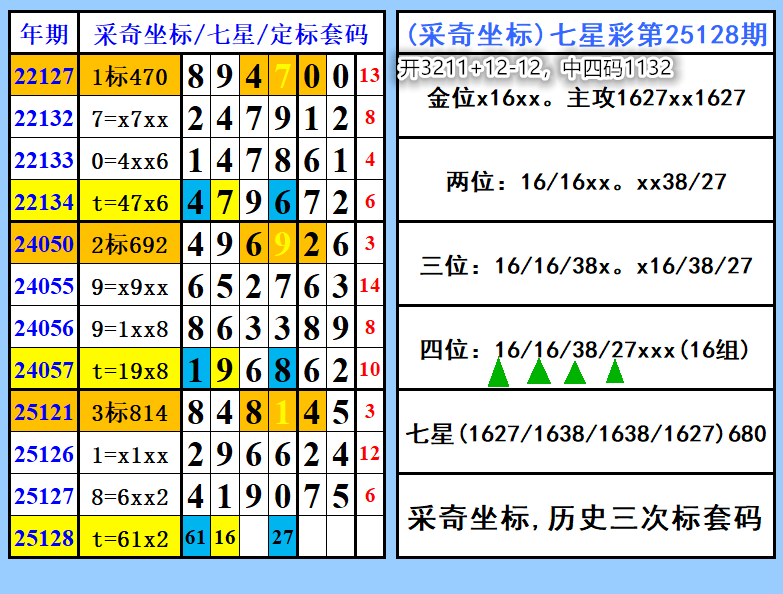 聂飞云七星彩:上期命中三等奖,298期后区正确