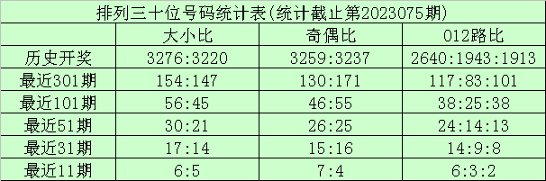 十位分析:上期奖号为3,出现小号、奇数、0路号码,在连续11期奖号中,该位大小比为6:5,大号走势比较活跃,本期关注大号再次开出;