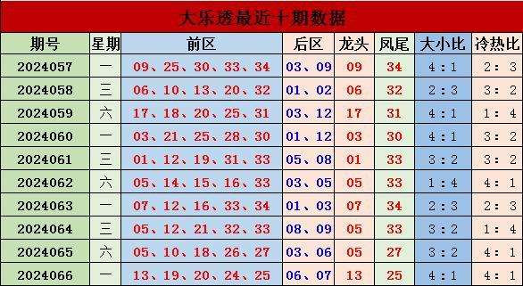 上期回顾:大乐透第2024066开奖,本期奖号:前区13 19 20 24 25,后区06 07。当期前区号码大小比为4:1,三区比0:4:1,奇偶比3:2。前区开出连号19 20 24 25,未开出重号。