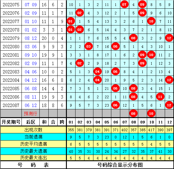 后区号码和值为18,跨度为6,奇偶比为0:2,大小比为1:1。