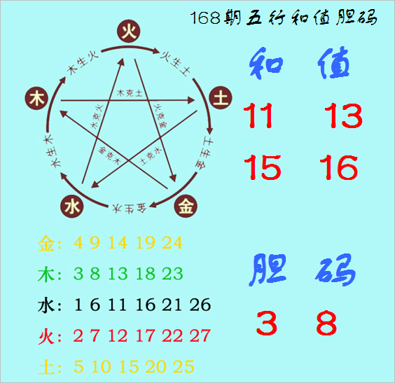 福彩3D第2022168期神算天五行和值胆码图