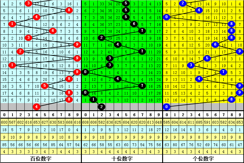 百位号码:前50期走势活跃的号码为:8开出7个,0开出6个,2、3、4、5、7、9开出5个;走势最冷的号码为:6开出3个,1开出4个,2、3、4、5、7、9开出5个。奖号012路比开出19:14:17,奇偶比开出24:26。本期百位杀排除:6、7,注意号码0、3、4,胆码参考4。