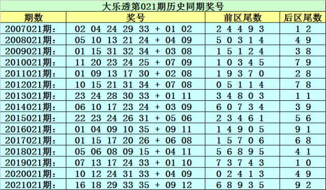 李太阳大乐透第2022021期历史同期后区尾数看号