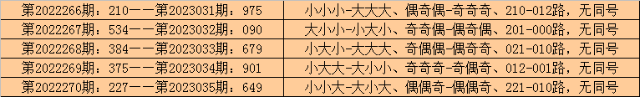 在排列三历史开奖中,第2022266期-第2022270期连续5期奖号为:210-534-384-375-227。
