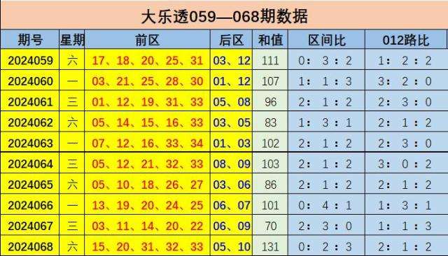 上期前区三区比为0:2:3,一区(1-12)开出0个号码,二区(13-24)开出2个号码,三区(25-35)开出3个号码;前区近10期三区号码比为12:20:18,1区出号较冷,2区出号较热,3区出号较温;综合分析推荐本期区间比为2:1:2。