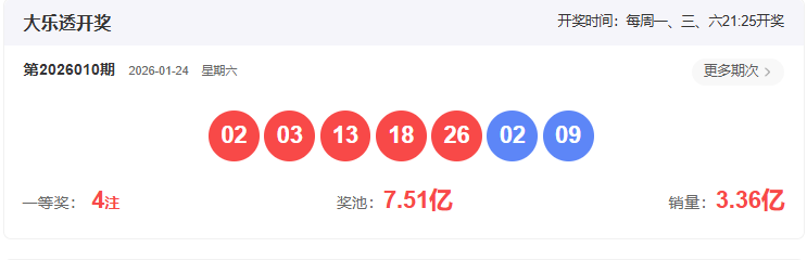 2026010期大乐透开奖号码: