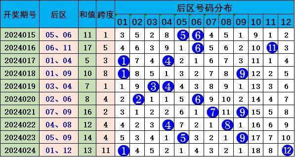 二区(13-24):上期二区开出1个奖号17,最近10期二区开出奖号总数为13个,开出号码总体低于理论值。本期关注2个二区号码:18 19。