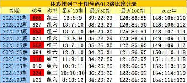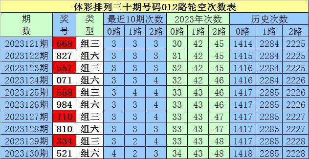 开奖回顾:排列三第2023130期奖号为:521,号码012路比为0:1:2。