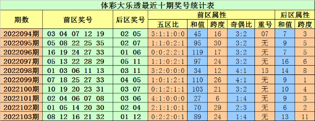 大乐透第2022104期前区分析: