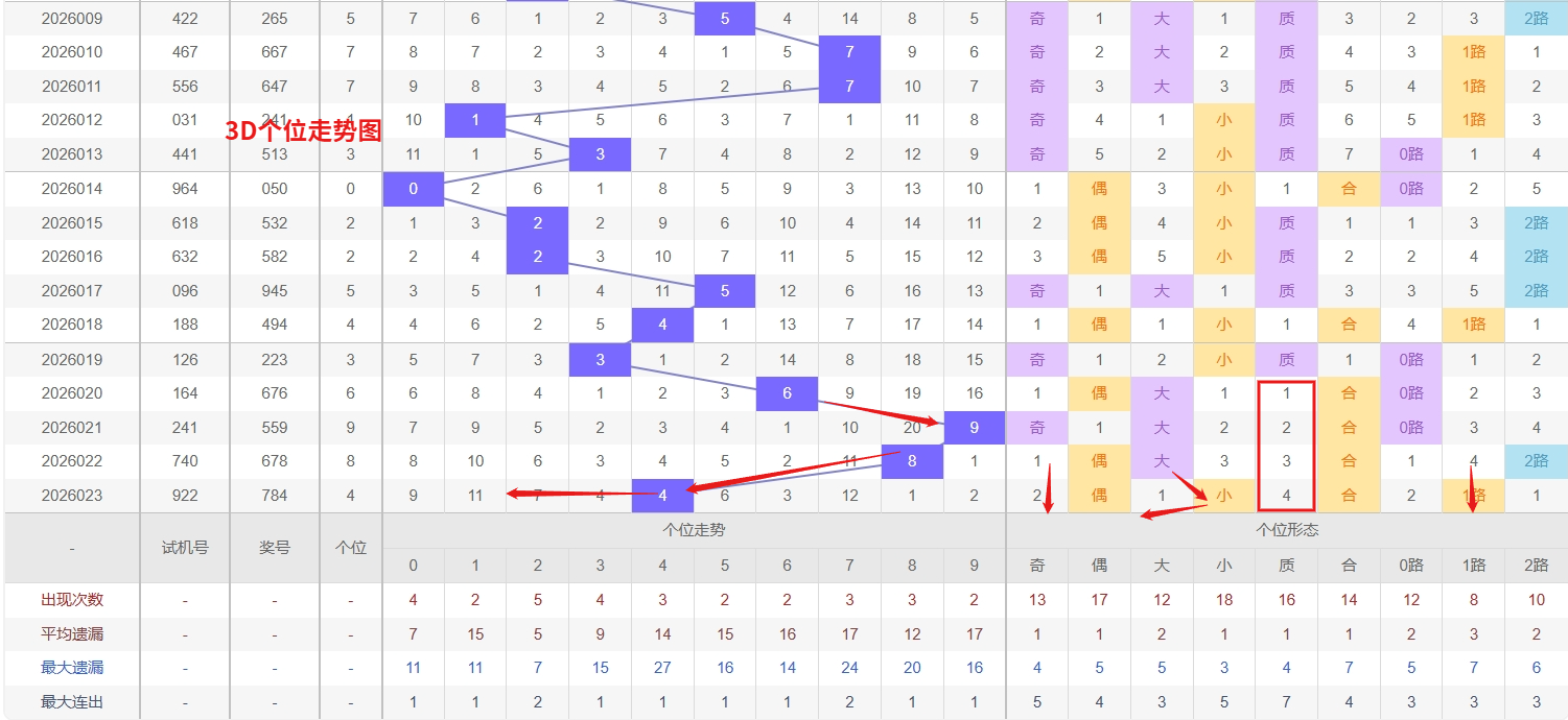 福彩3D个位分析:第2026023期个位开出号码4属于小偶数前端,从以上个位走势图中可以看出近100期的大小比约为48:52奇偶比约为55:45大小奇偶数据上有点差异有需求但不是太明显,不太好看这时就要借助连线走势和遗漏数据来帮助我们缩水号码。上期个位落号“4”小偶数1路号码球,号码开出了4振幅,连续多期的大振必被小振幅取代幅符合我们的预期,那么本期我们在个位考虑振幅走势走前依然要转变思路考虑大振幅,具体考虑(1-5)个振幅是我们主要的方向,那么在对个位落号情况进行系统的分析时我们可以明显的看到个位号码走势呈现大范围震荡,尤其是在号码的落位特点上表现的尤为突出,那么本期我们在个位分析时就要注意号码的风险,避免出现踏空。3D个位近期走势分析,数字2表现出明确的热态特征,连续开出的可能性较高,是需要重点防范的热连对象。与此同时,数字1已进入明显的冷态周期。根据号码分布长期趋向均衡的规律,冷号在经历较长时间遗漏后,其回补的势能与概率会显著提升。因此,当前的策略应是“热冷兼顾,双向设防”:既要紧盯热号2的连下可能,追踪其热态惯性;也须对冷号1的潜在反弹保持高度警惕,因此福彩3D第2026024期个位看好12378。
