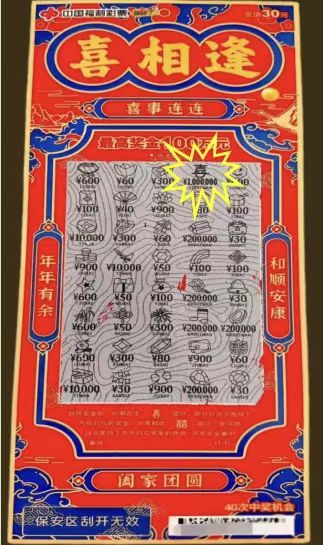 据悉,王女士专程来民勤县参加"请到民勤种棵树"公益活动。返程途经北广场福彩站点时,店内喜庆氛围吸引她和朋友进店。在琳琅满目的即开票中,她选择了一张"喜相逢","1000000元"的中奖数字让她一度不敢相信自己的眼睛。