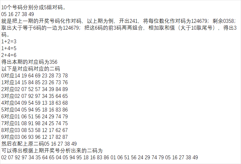 869和4,4,3,8,6,3,4,0,9的同码为689。这个有个细节要注意,如果同码只有1个号,我们可以用这个号的相邻号码中选取比较热的一个号码来补全,组合成2码,再取这个两个号码的对码来组成4码的胆组。