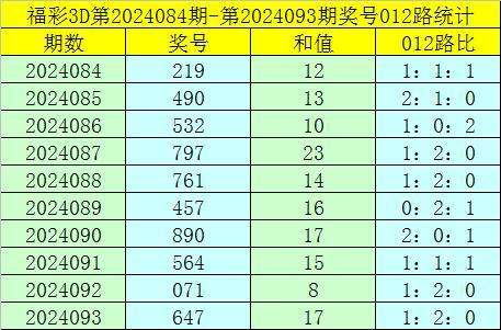 福彩3D第2024094期012路分析