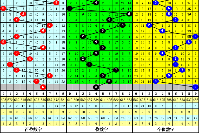 1。百位:最近9次大小总比例是2:7,奇偶总比例是4:5,012路总比例是4:3:2,本期预计百位开出号码3569,金胆看好为0路号6。