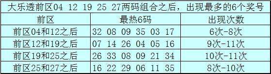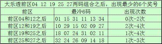 前区冷码统计:大乐透第24018期前区奖号为:04、12、19、25、27,截止第24018期历史上大乐透已经开出了2534期奖号了,在连续两码奖号中: