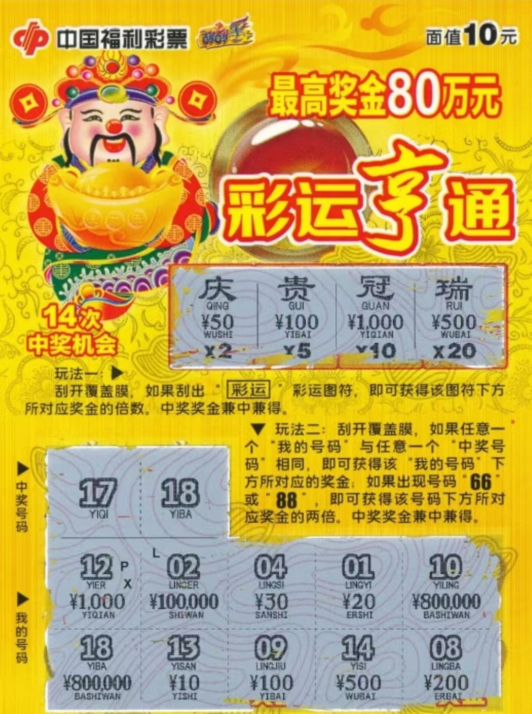 游客刮中"彩运亨通"80万大奖