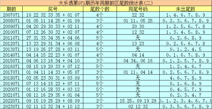 历史上大乐透第071期开出17次奖号,本期第2024071开奖: