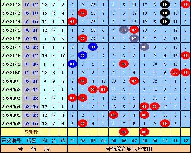 后区分析:上期后区开出奖号02、10,为一大一小、全偶组合。