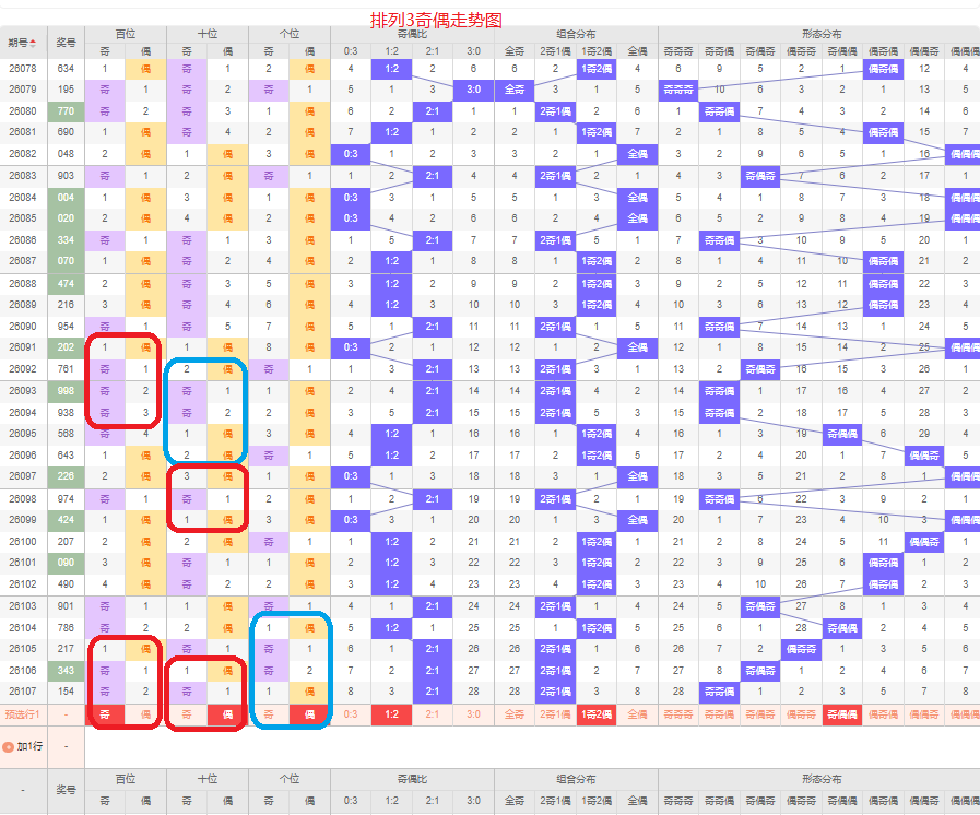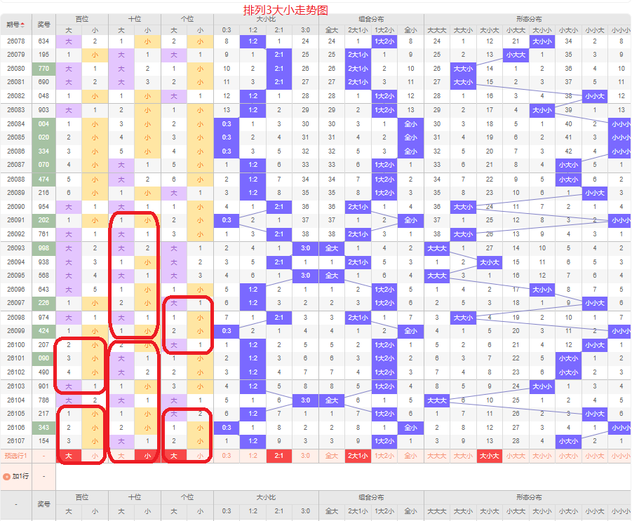 百位近三期是小号码,侧重奇数的号码,侧重大号码,侧重1路和2路的号码,侧重号码25789。
