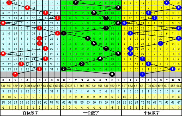 其中,百位奇偶比为6:5,大小比为7:4,本期百位一码参考2。