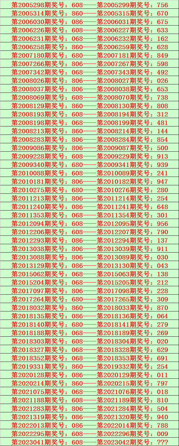 排列三第2023041期开出奖号608,该号码直选类型历史上出现了12次,前11次开出之后期下期奖号为:756、633、738、312、913、241、956、790、020、810、009,见下表: