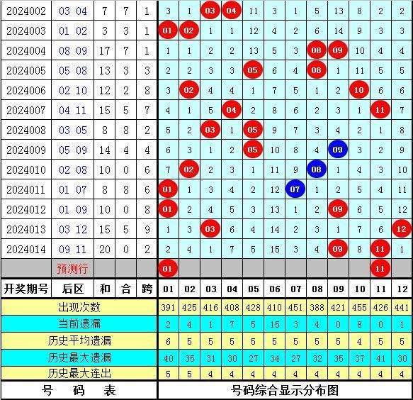 在历史同期开奖中,后区号码和值奇偶为6:11,其中偶号和值开出比例较高,本期预计偶号和值继续热出,参考和值12。