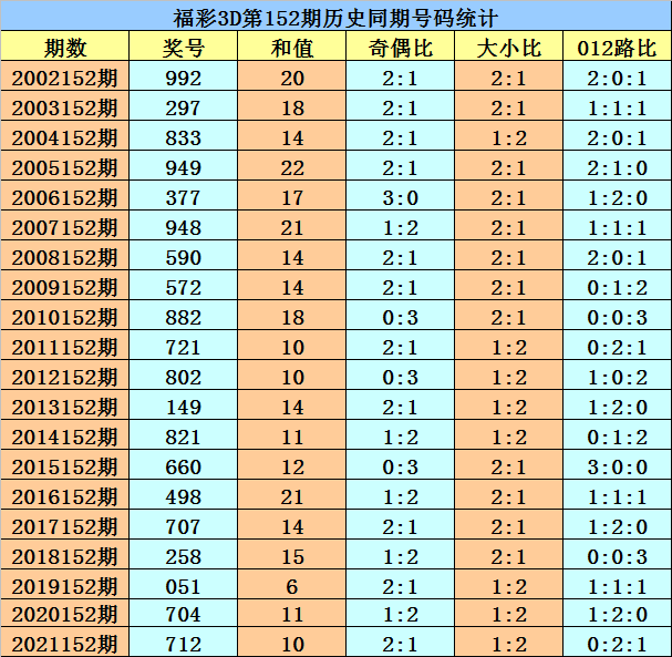 152期九哥福彩3D预测奖号:奇偶冷态判断